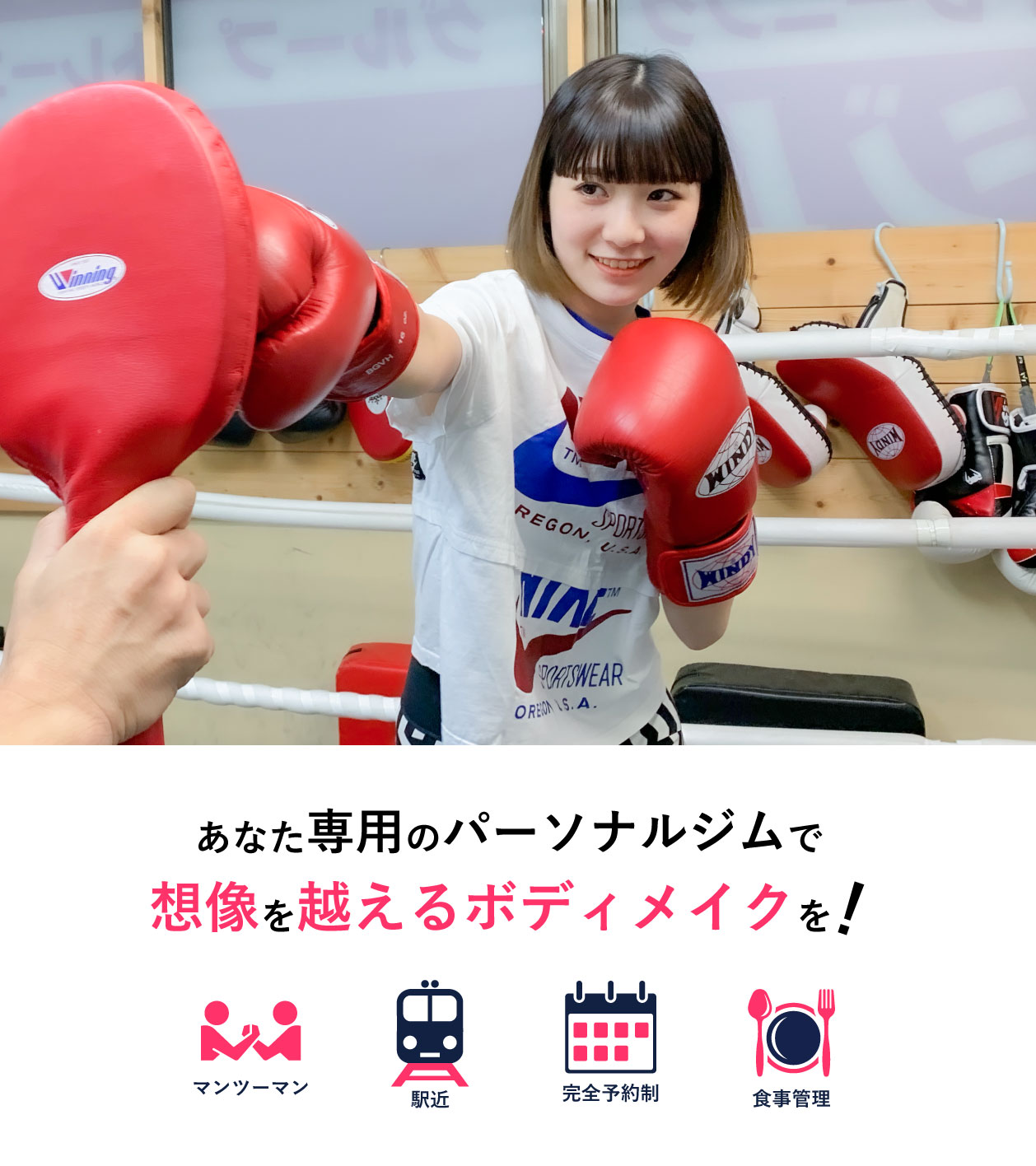 トレーナーとマンツーマンで徹底的に肉体改造トレーニングが出来ます。キックボクササイズだけでなく、筋トレなどもバランス良く取り入れて、トレーナーと相談しながら無理なく、あなたのレベルに合わせたトレーニングご提案します。